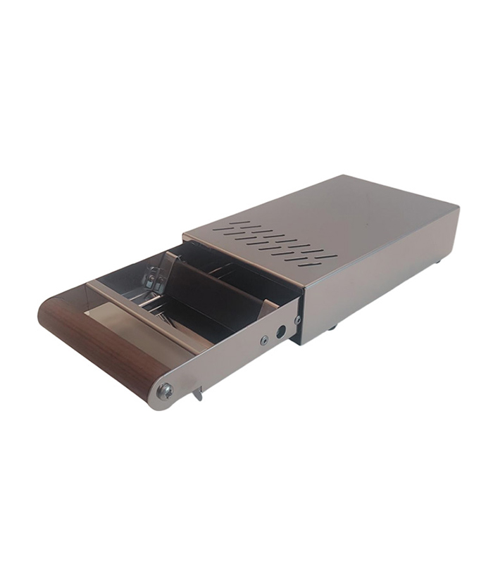 Hochglanzpolierter Edelstahlsockel mit Holzgriff
